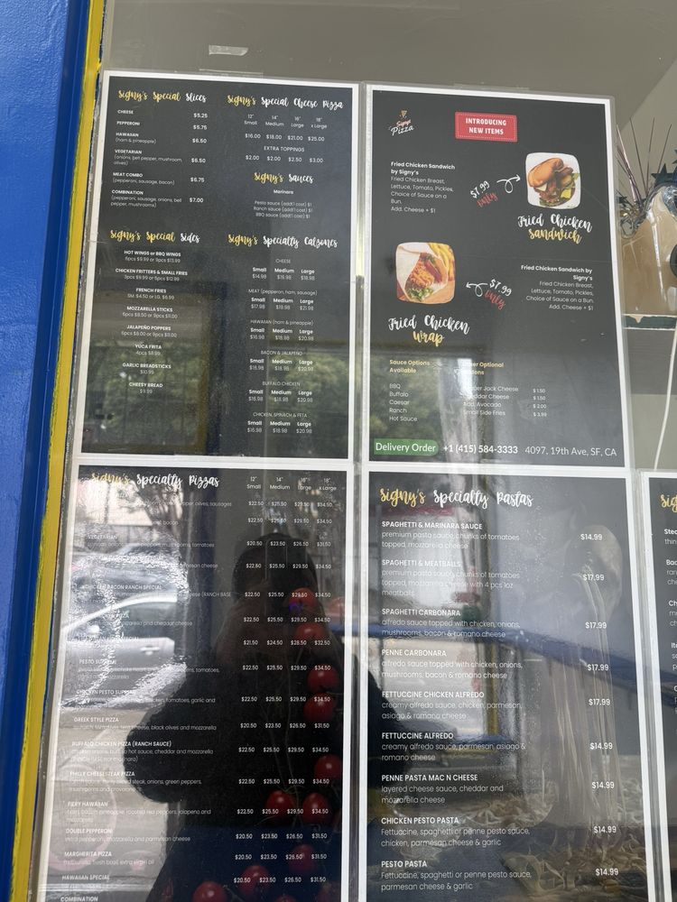 Welcome to Signy’s Pizza, a delightful eatery nestled in San Francisco, where culinary creativity meets comfort food. Our menu is a vibrant tapestry featuring signature pizzas, scrumptious sides, and refreshing beverages.